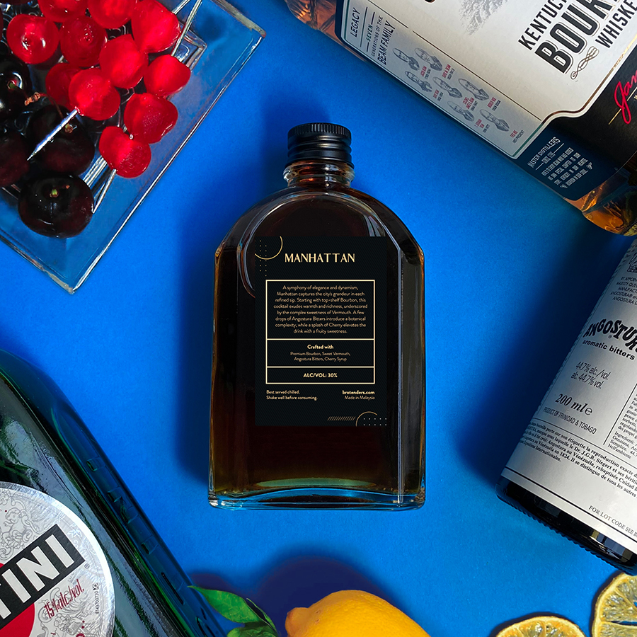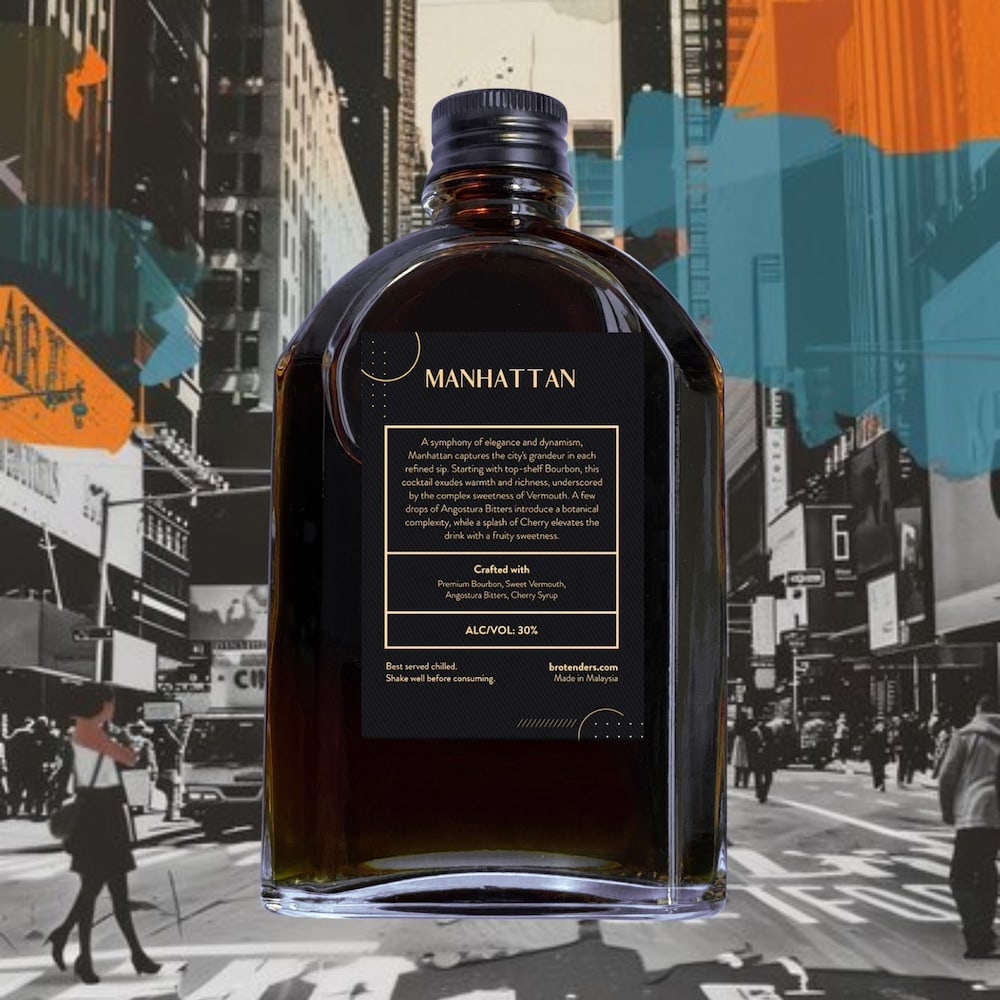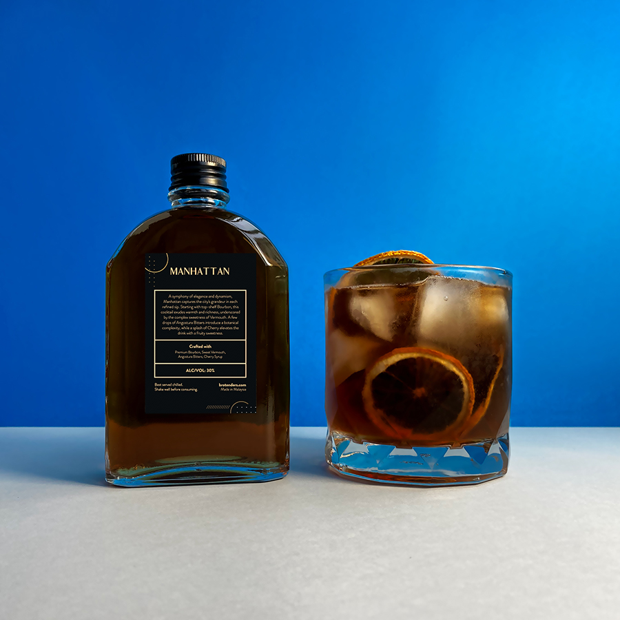 A symphony of elegance and dynamism, Manhattan captures the city's grandeur in each refined sip. Starting with top-shelf Bourbon, this cocktail exudes warmth and richness, underscored by the complex sweetness of Vermouth. A few drops of Angostura Bitters introduce a botanical complexity, while a splash of Cherry elevates the drink with a fruity sweetness.
