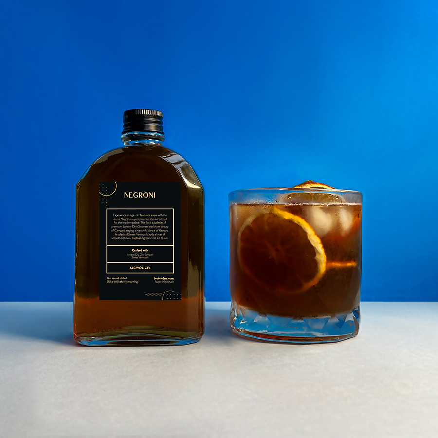 Experience an age-old favourite anew with the iconic Negroni; a quintessential classic, refined for the modern palate. The floral subtleties of premium London Dry Gin meet the bitter beauty of Campari, staging a masterful dance of flavours. A splash of Sweet Vermouth adds a layer of smooth richness, captivating from first sip to last.