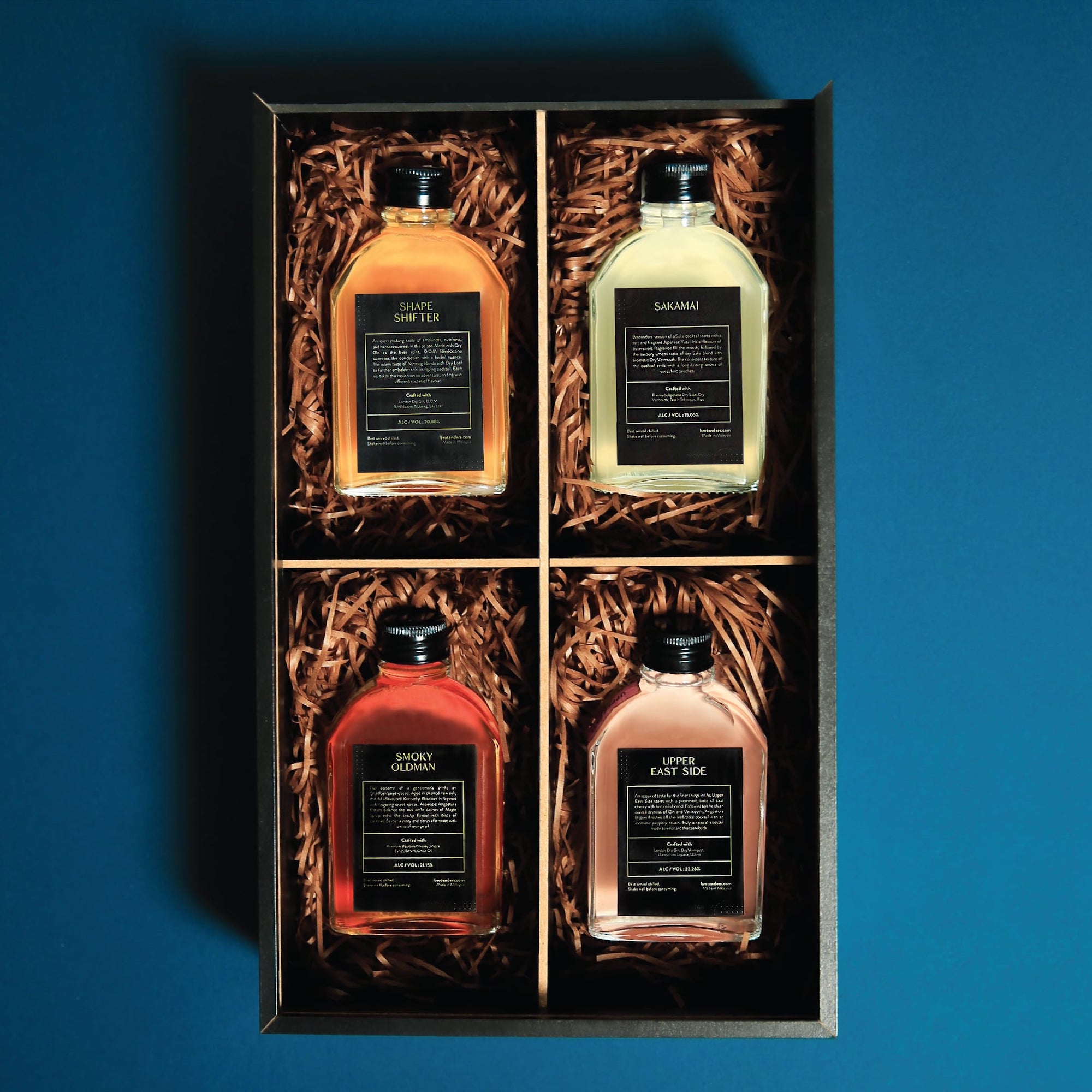 4 of Brotenders' 100ml cocktails, wrapped and delivered in a cocktail gift box. An ideal alcohol gift set to treat that special someone.
